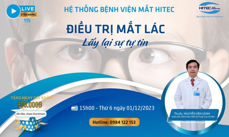 ?Đón xem livestream số 115 lúc 15h00 ngày 01/12/2023 trên fanpage của Bệnh viện Mắt Kỹ Thuật Cao Hà Nội để biết thêm thông tin chi tiết về bệnh mắt lác.