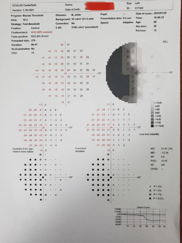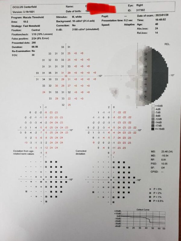 Hình ảnh tổn thương thị trường 2 mắt của bệnh nhân A [/caption]