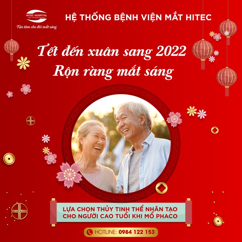 Nhân dịp đón xuân Nhâm Dần, Hệ thống bệnh viện Mắt Hitec sẽ cùng bạn dành tặng những món quà ý nghĩa bày tỏ lòng biết ơn với đấng sinh thành. Hitec sẽ giúp bạn tìm lại thị lực tuổi thanh xuân của cha mẹ qua các “Gói phẫu thuật PHACO – Điều trị Đục thủy tinh thể” Và đây là những gì Hệ thống Bệnh viện Mắt Hitec sẽ mang lại cho cha mẹ của bạn: