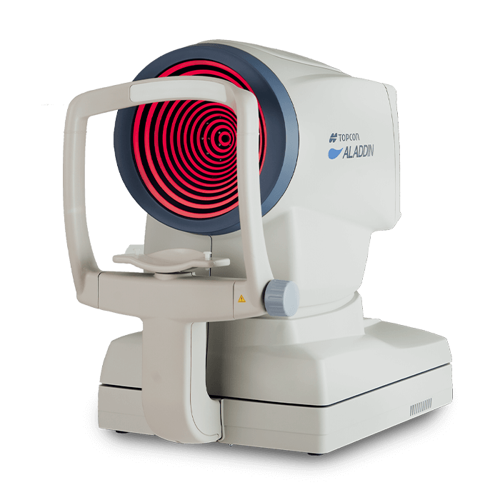 Topcon đưa ra một giải pháp đầy đủ với hệ thống máy ALADDIN sinh trắc quang và bản đồ giác mạc. ALADDIN hỗ trợ phẫu thuật viên không chỉ trong việc chọn độ cầu cho thuỷ tinh thể nhân tạo mà còn cung cấp lựa chọn loại thuỷ tinh thể cao cấp phù hợp cho từng bệnh nhân. Với các thông số về chiều dài trục nhãn cầu kết hợp với việc đo chụp bản đồ giác mạc sử dụng các vòng Placido với công nghệ mới nhất, kết quả sinh trắc học được đưa ra đầy đủ với thông tin tiền phòng, đường kính đồng tử… chỉ với một lần đo nhanh, chính xác và dễ dàng.