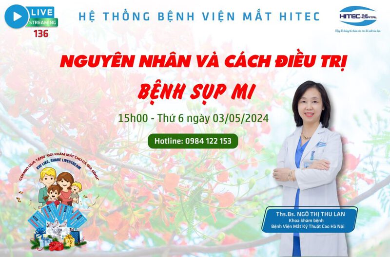 Đón xem livestream tuần này lúc 15h00 ngày 03/05/2024 trên fanpage của Hệ thống Bệnh viện Mắt Hitec được cung cấp thông tin đầy đủ về bệnh sụp mi mắt.