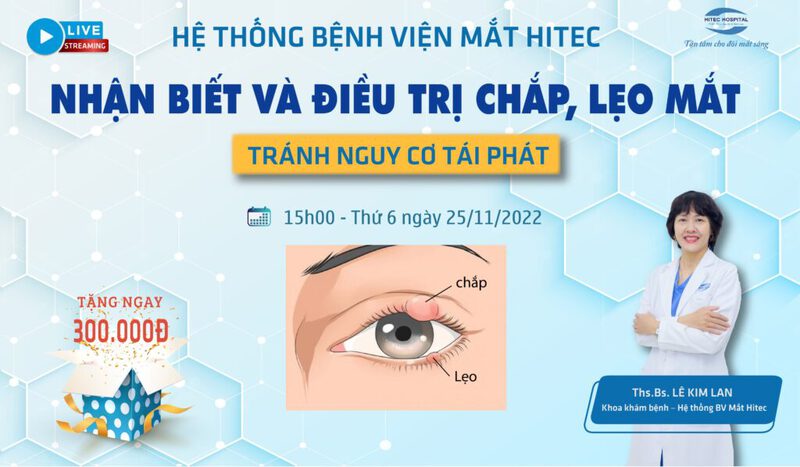 ???Đón xem livestream lúc 15h00 ngày thứ 6 ( 25/11/2022) trên fanpage của Hệ thống Bệnh viện Mắt Hitec sẽ cung cấp thông tin đầy đủ về chắp, lẹo mắt với sự hỗ trợ chuyên môn từ Chuyên gia nhãn khoa Ths.Bs Lê Kim Lan - Khoa khám bệnh - Hệ Thống Bệnh Viện Mắt Hitec