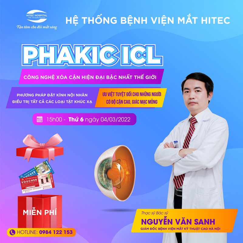 Phakic ICL là phương pháp phẫu thuật điều trị tật khúc xạ bằng cách đặt thấu kính nội nhãn sinh học (Implantable Collamer Lens -ICL) rất nhỏ, mỏng, cực kỳ mềm dẻo được thiết kế riêng theo thông số mắt của mỗi người. Phakic ICL có mặt trên thế giới hơn 30 năm, phổ biến tại 75 quốc gia với hơn 1.000.000 ca phẫu thuật đã được thực hiện. Có mặt tại Việt Nam đã hơn 10 năm, Phakic ICL ngày càng khẳng định hiệu quả vượt trội trong điều trị cận, viễn và loạn thị, ưu việt tuyệt đối cho những người có độ cận cao, giác mạc mỏng.
