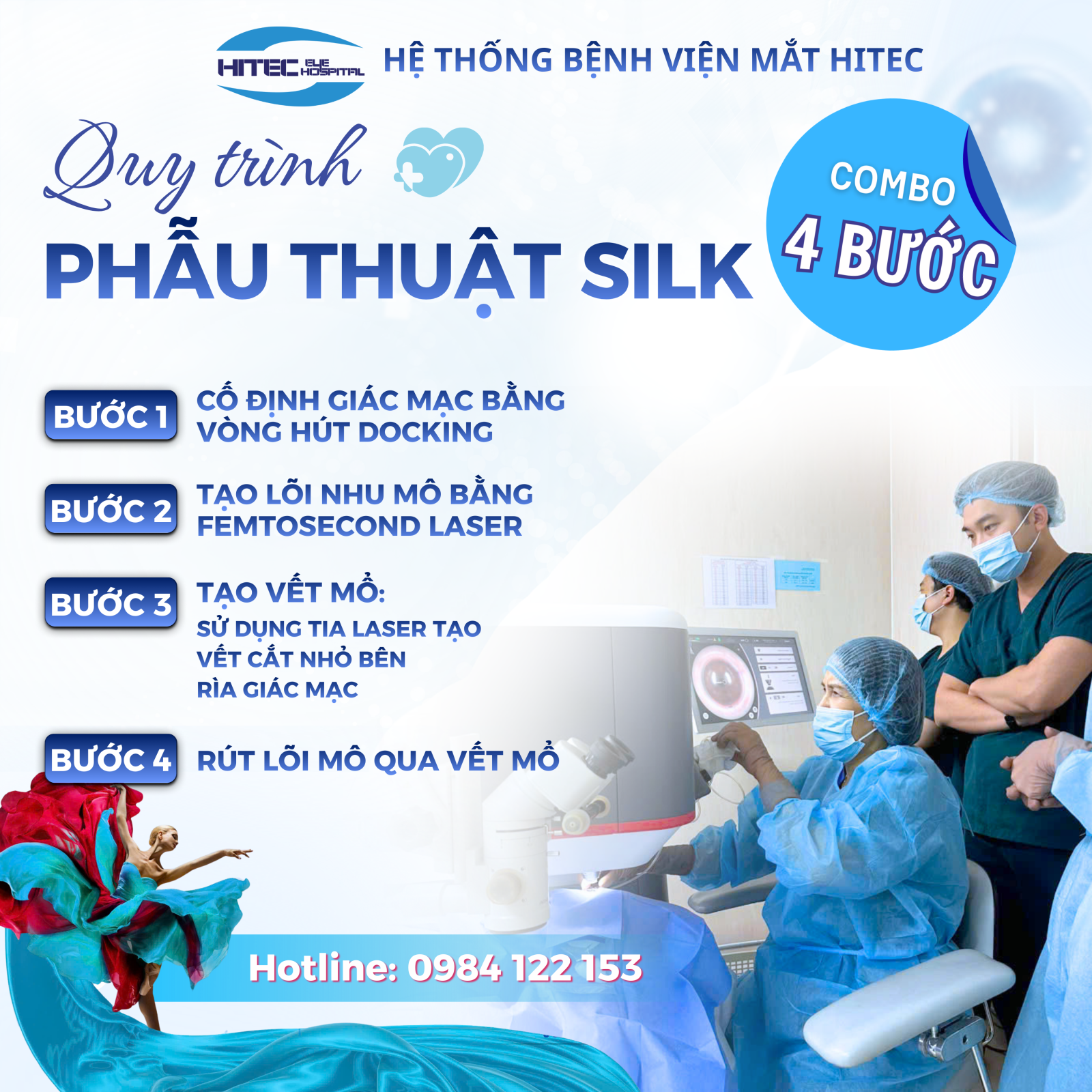 Phẫu thuật SILK là phương pháp mổ cận thế hệ mới, trong đó toàn bộ thao tác chính được thực hiện bằng Femtosecond laser. Công nghệ này cho phép kiểm soát chính xác từng bước trong quá trình phẫu thuật, góp phần nâng cao độ an toàn và hiệu quả điều trị.