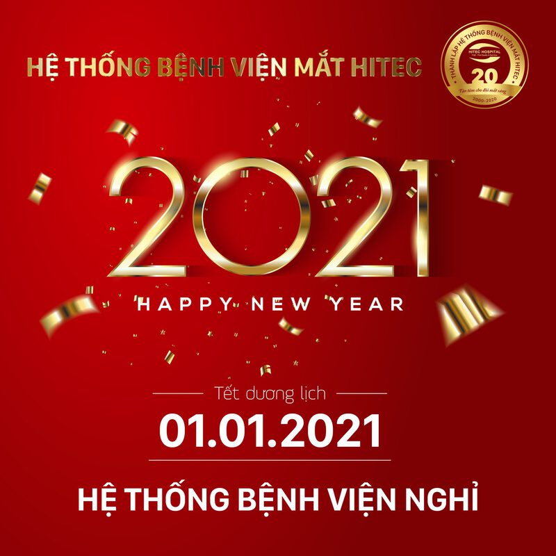 Hệ thống bệnh viện mắt HITEC trân trọng thông báo tới Quý khách nội dung: Toàn bộ Hệ thống bệnh viện mắt HITEC nghỉ Tết dương lịch 1/1/2021.