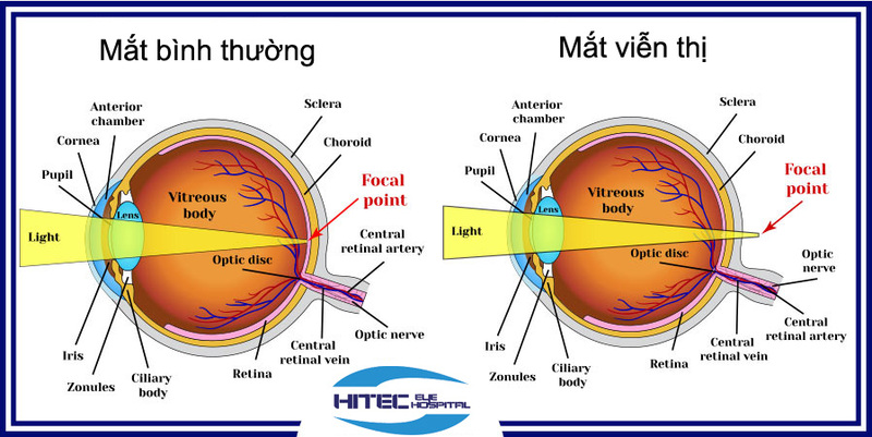 Hình ảnh so sánh giữa mắt viễn thị và mắt viễn thị